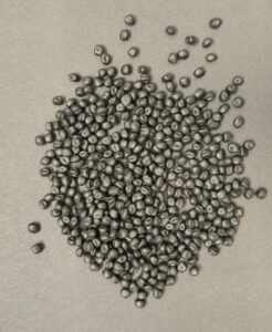 Thermoplatic polyurethane (TPU) with Polytetramethylene Ether Glycol/Polytetrahydrofuran (PTMEG) linkages. It consists of a mixture of black and transparent pellets.